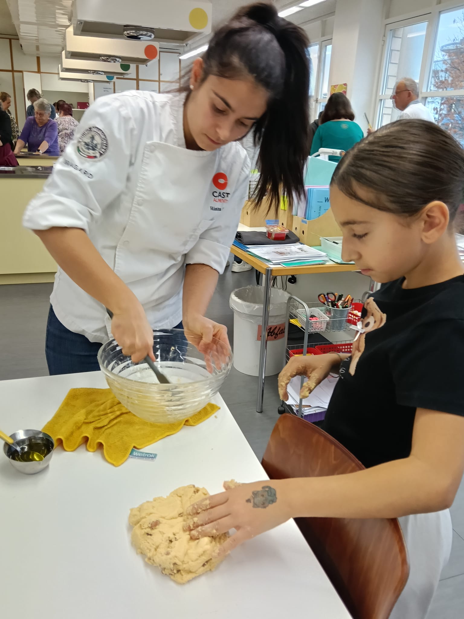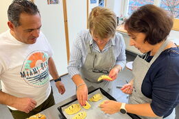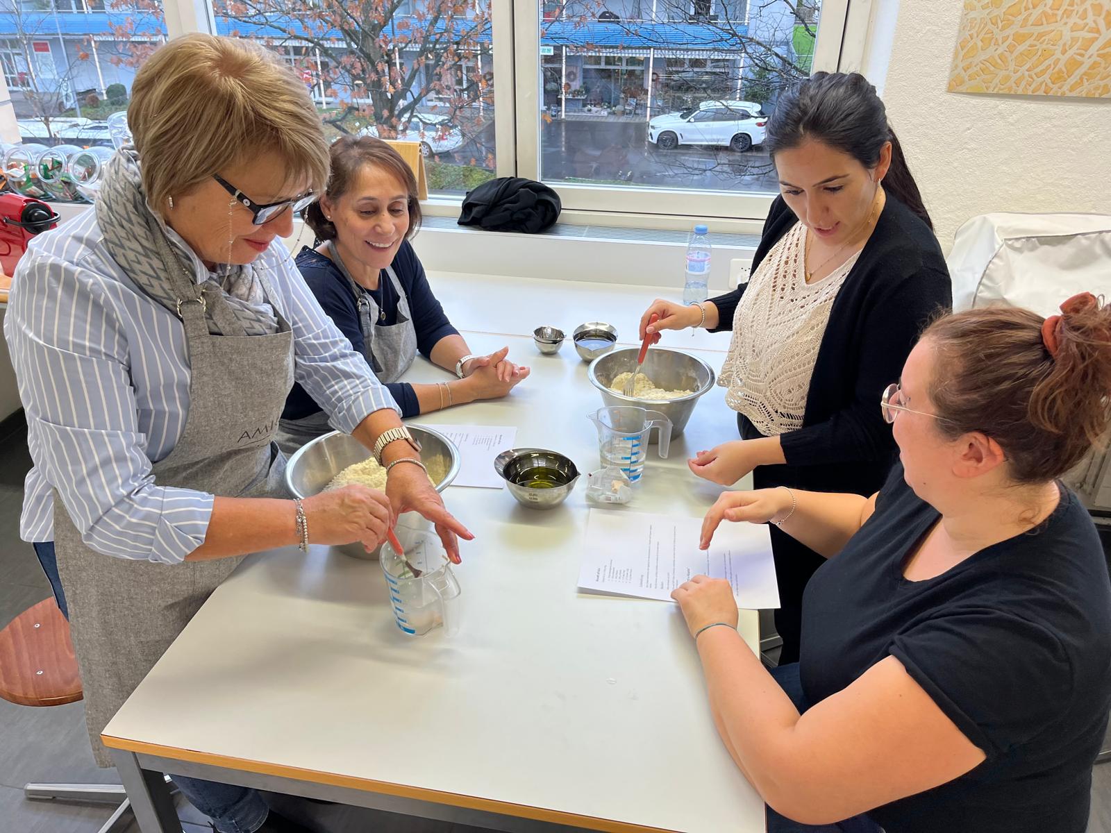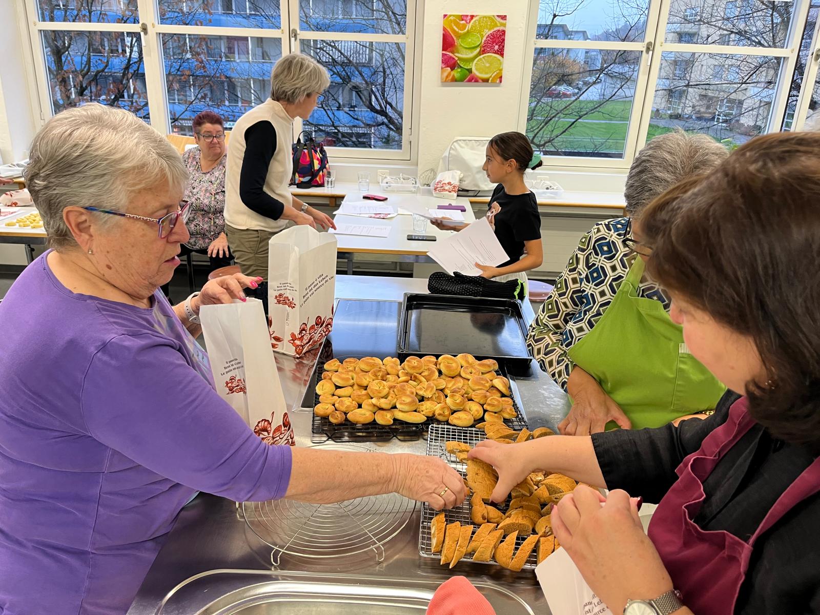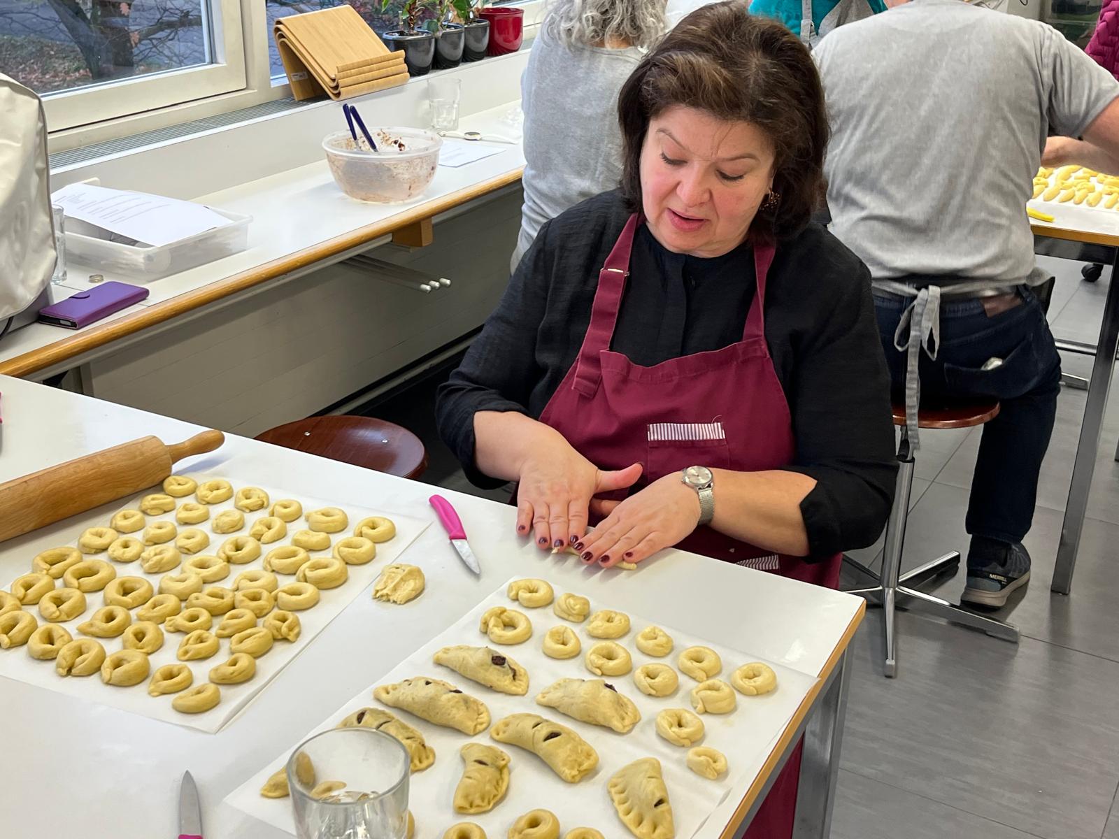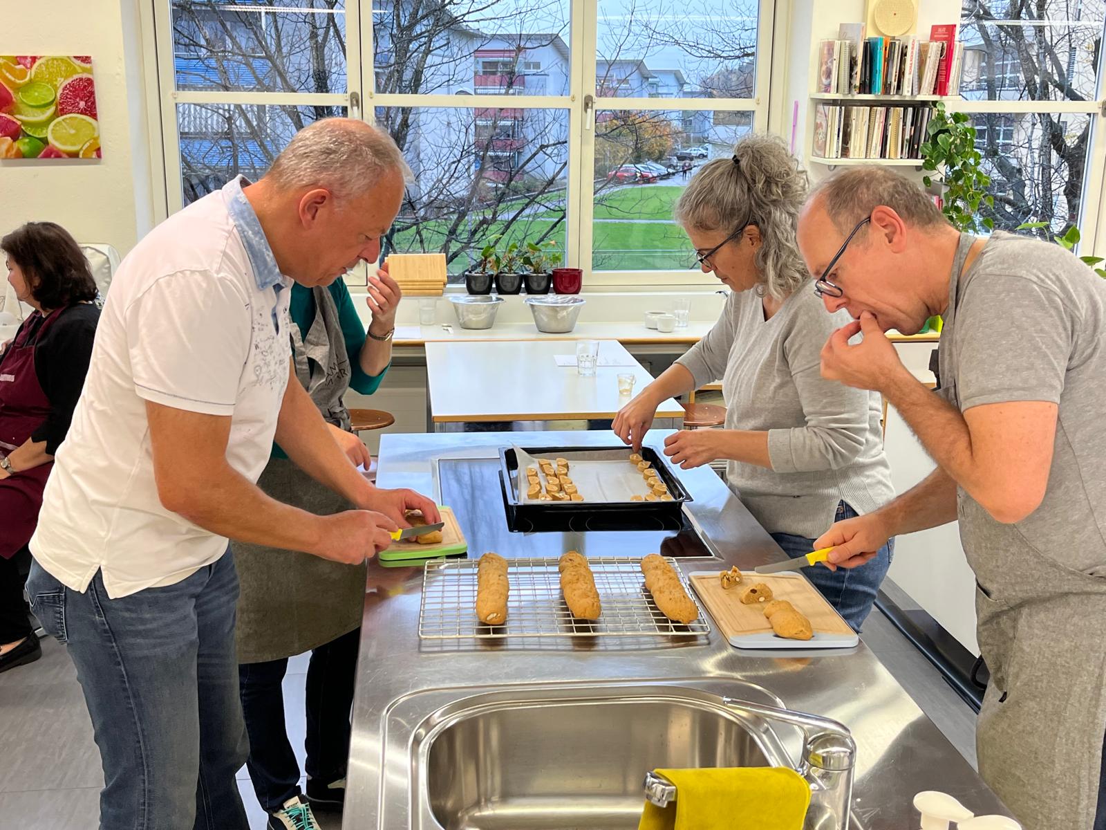 Ende August 2025 nutzten Enrico und ich die Gelegenheit, bei einem Treffen mit Claudia kurzfristig einen Backkurs zu organisieren. Die Idee bestand darin, amaronesische Spezialitäten zu backen. Dafür benötigten wir viel Know-how – und wer wüsste das besser als unsere Claudia und Valentina Frisina aus Oberentfelden? Claudia und Valentina stammen beide aus Amaroni und haben vor sechs Jahren in Oberentfelden ihre Arte Pasticcera gegründet. Kurzentschlossen und sehr schnell fixierten wir ein Datum und versendeten unmittelbar danach die Einladung an unsere Mitglieder. Es war ein Probelauf, und wir wussten nicht, wie der Anlass ankommen würde. Die Kochküche war für 15 Teilnehmende ausgelegt, was wir auch entsprechend kommunizierten. Bereits nach wenigen Tagen waren alle Plätze ausgebucht, sodass wir den Anlass gar nicht mehr öffentlich bewerben mussten. Claudia und Valentina hatten den Kurs grossartig vorbereitet und zauberten an diesem Samstag gemeinsam mit uns, drei verschiedene Backspezialitäten. Innerhalb von drei Stunden gelang scheinbar das Unmögliche. Alle 15 Teilnehmenden machten mit grosser Begeisterung, Teamgeist und viel Freude mit und wir erhielten zahlreiche positive Rückmeldungen. Das Backen mit Claudia und Valentina war geprägt von Harmonie, Leidenschaft und echtem Handwerk – ein kulinarisches Zusammenspiel, das man schmecken und spüren konnte.